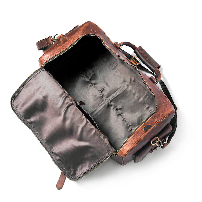Overnight Mens Full Grain Leather Duffel Bag | Personalized Weekend Travel Bag | Brown Leather Holdall | Carryon Leather Luggage Bag | Unique Gift For Boyfriend